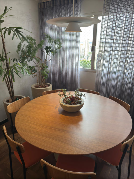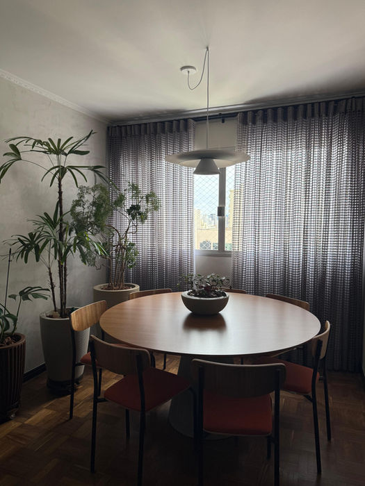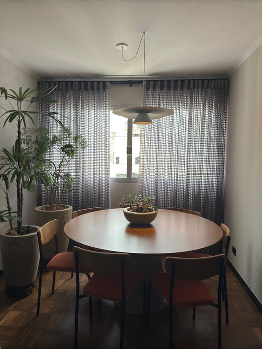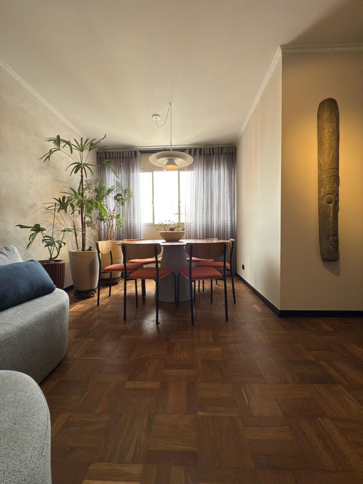 Meu lar é um apartamento em um prédio de 1980, repleto de elementos originais que fazem meu coração bater mais forte — como o piso em taquinho, meu verdadeiro xodó, e as portas com molduras cheias de história.